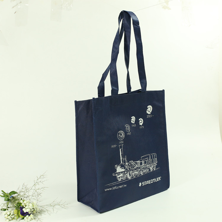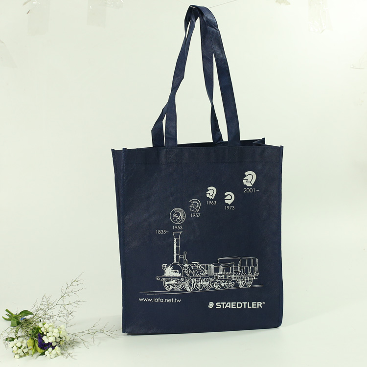 紅酒Lafa steadtler無紡布袋,促銷手提袋廣告。90g深藍色無紡布,白色絲網印刷,精確縫制。